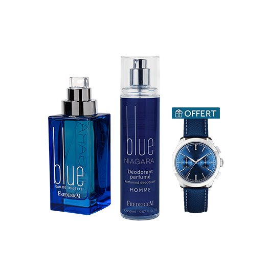 Niagara Blue Eau de Toilette + Niagara Blue Parfümiertes Deodorant + Blaue Herrenuhr