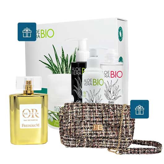 Retrouvez Une Vie en Or, délicat chypré fleuri., accompagné du lait corps aloe vera, du déodorant aloe vera, eau micellaire et du gel nettoyant au charbon. Grâce à ses quatre produits phares FREDERIC M, bénéficiez de tous les bienfaits hydratants et apaisants de l'aloe vera, le tout dans le coffret aloe vera de la marque.
