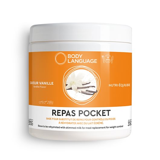 Diluer 200 ml de lait (écrémé, amande, soja, ou tout autre boisson végétale) et un sachet REPAS POCKET SAVEUR VANILLE