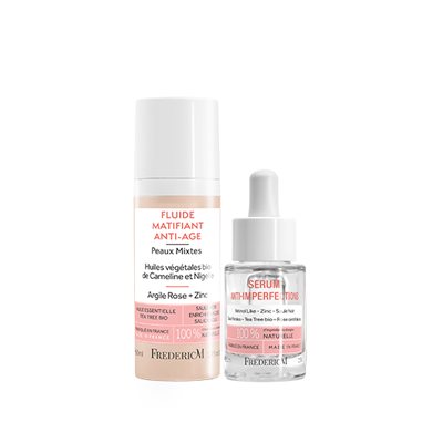 Матирующий флюид с гидролатом чайного дерева, экстрактом черного тмина, розовой глиной и цинком.