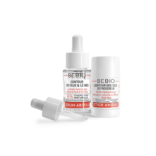 Prenez soin de votre regard avec ce duo de soins. Il se compose d'un stick pour les yeux avec son alternative naturelle au Retinol et d'un contour des yeux et des lèvres aux ingrédients d'origine naturelle hydratant et anti-âge enrichi en vitamine C. Nos actifs phares, l'acide hyaluronique et notre actif anti-âge sont reconnus pour leurs nombreuses vertus pour la peau. Utilisez en complémentarité le le sérum contour des yeux et des lèvres le matin et stick défroisseur le soir.