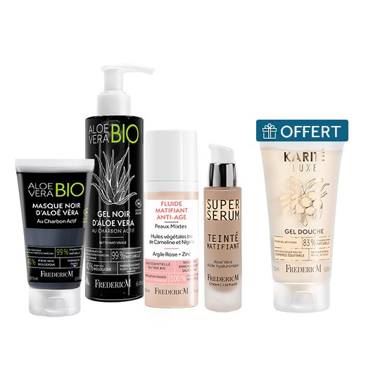 The mattifying tinted serum, enriched with organic Aloe Vera, combines the benefits of a moisturizing treatment. Hyaluronic acid helps to unify the complexion and plump the skin. Formulated with mattifying ingredients, it controls excess sebum throughout the day, leaving skin soft and without shine. This serum offers a natural and light finish.