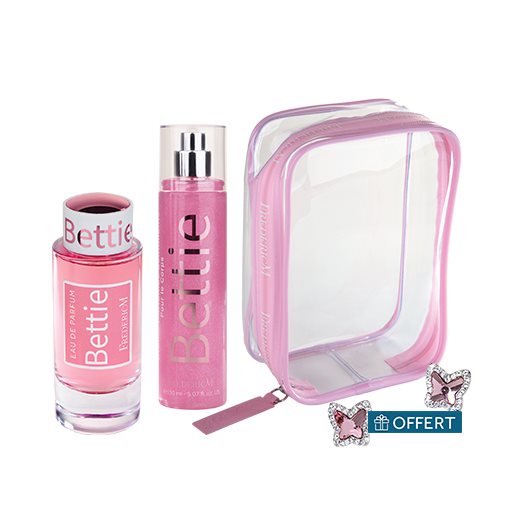BETTIE Eau de Parfum + BETTIE MIST + PVC-Beutel + Ohrringe
