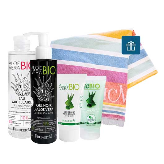 Find aloe vera in our flagship products! Micellar water contains 80% aloe vera, with its soft and 100% natural formula, it cleanses, moisturizes and soothes the skin, thus getting rid of makeup and impurities. To finalize the cleansing, the black gel with activated charcoal unclogs the pores and purifies the skin. The hand cream as well as the scrub gel, two products that we no longer present, are also composed of aloe vera, to the delight of the face and hands!