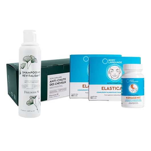 KERAGENIC allows the reduction of hair loss and increases the resistance of nails thanks to keratin, vitamins and zinc.