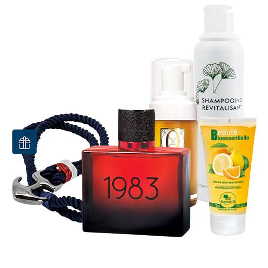 1983, the emblematic fragrance of FREDERIC M is accompanied here by the detox mask, the Quintessence Or mousse and the revitalizing shampoo. Musk and patchouli leave a character imprint on the skin. The detox mask revitalizes the skin, the Quintessence Gold foam gently cleanses and the revitalizing shampoo helps the hair regain all of its vitality.