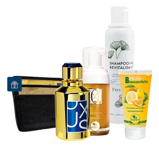 Oxus perfume, refined, elegant and masculine impression. It is accompanied here by the detox mask, the Quintessence Gold foam and the revitalizing shampoo. The detox mask revitalizes the skin, the Quintessence Gold foam gently cleanses and the revitalizing shampoo helps the hair regain all of its vitality.