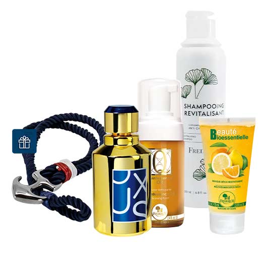Oxus perfume, refined, elegant and masculine impression. It is accompanied here by the detox mask, the Quintessence Gold foam and the revitalizing shampoo. The detox mask revitalizes the skin, the Quintessence Gold foam gently cleanses and the revitalizing shampoo helps the hair regain all of its vitality.