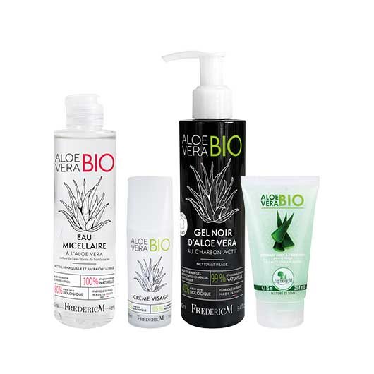This set contains an aloe vera face cream allowing the skin to regain its suppleness. A charcoal aloe vera facial cleanser to cleanse and purify the skin of impurities. A micellar water with aloe vera that cleanses and removes make-up in a single step. Finally, the gentle exfoliant with aloe vera gently eliminates dead cells and offers a refreshing and soothing effect.