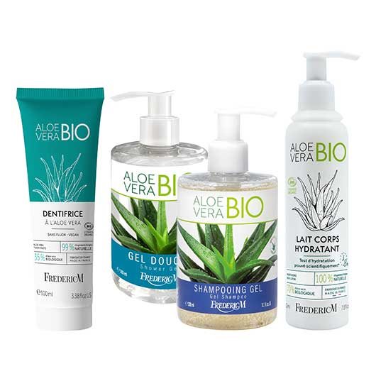 This set contains a moisturizing and soothing aloe vera shower gel. An aloe vera gel shampoo, preserving your scalp. An aloe vera toothpaste guaranteeing good oral hygiene. To finish, a hydrating body milk with aloe vera allowing the skin to immediately regain comfort, softness and suppleness.