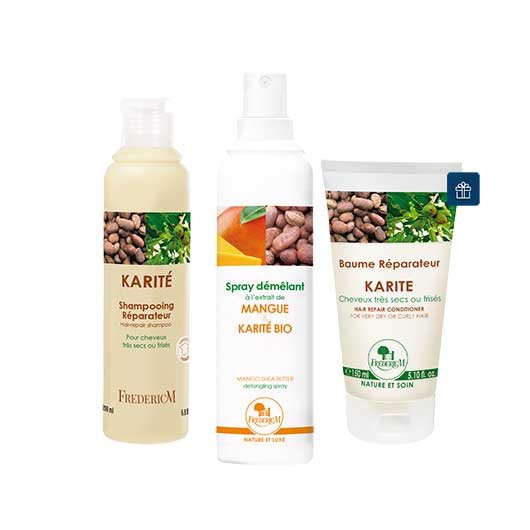 This duo includes a shea repair shampoo that regenerates and nourishes very dry or frizzy hair with a mango and shea detangling spray. An extraordinary treatment to facilitate styling and beautify the hair.