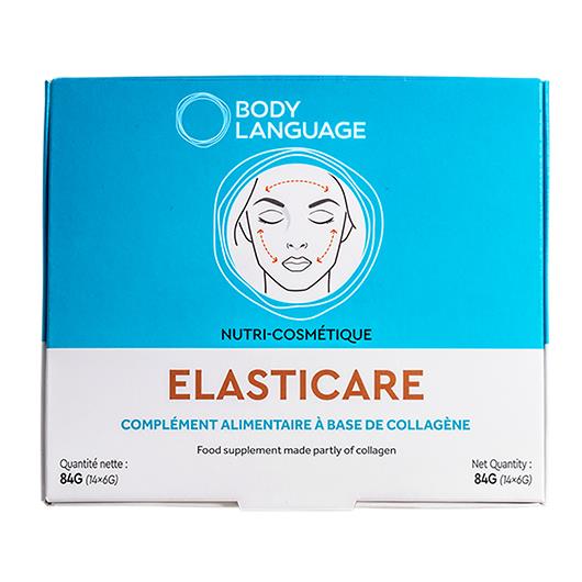¡Combate los signos del envejecimiento desde adentro hacia afuera con un simple gesto cada mañana! Elasticare reúne antiedad esencial para una piel visiblemente más firme y elástica. ELASTICARE incorpora el único ingrediente anti-envejecimiento por excelencia: el colágeno hidrolizado de pescado. El colágeno, sintetizado naturalmente por el organismo, es la proteína responsable de la firmeza de la piel. A partir de los 25 años, su producción disminuye y aparecen signos de envejecimiento. ELASTICARE mejora el nivel de hidratación de la piel, mejora la flexibilidad de la piel, estimula la producción de colágeno, fortalece la dermis y apoya la recuperación de los tejidos conjuntivos y articulares.
