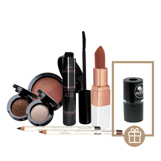 Lápiz de Ojos Les Naturels (CYN01) + dos sombras de ojos minerales (MMO05+MMO06) + mascara Les Naturels (MSN00) + colorete mineral (MMB01) + barra de labios Les Naturels (RMN95) + lápiz de labios Les Naturels (CLN02) - SACAPUNTAS (PRD38) de regalo