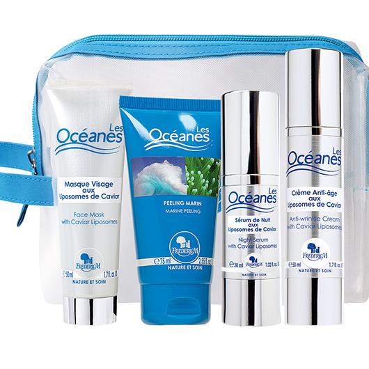 Descubra nuestro pack "Los Océanos" que asocia 4 tratamientos complementarios para el rostro. Algas pardas de Bretaña, fitoplancton y liposomas de caviar: ¡disfrute de lo mejor del océano en una sesión de talasoterapia a domicilio! El pack "Los Océanos" contiene la Mascarilla para el rostro con liposomas de caviar (OCE22), la Crema antienvejecimiento con liposomas de caviar (OCE20), un Suero de noche con liposomas de caviar (OCE21) y el Peeling marino (OCE04).