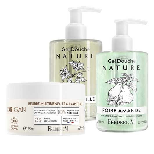 Après une longue journée rien de mieux qu'une douche revitalisante avec nos gels douche NATURE au extrait de Poire amande et chèvrefeuille ! Hydrater votre corps au quotidien avec notre beurre au karité bio et ses multibienfaits.