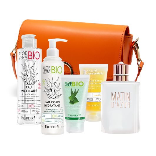 Commencez votre routine avec notre eau micellaire à l'aloe véra bio pour un démaquillage en profondeur. Pour un nettoyage efficace, l'exfoliant doux à l'aloe Vera sera votre alliée incontournable. Laissez poser le masque Détox multivitaminée pendant 10 min pour une hydratation efficace. Pour le corps, le lait corporel toujours à l'aloe Vera bio laissera un film hydratant sans coller sur les vêtements. Le parfum de toilette MATIN D'AZUR apportera une touche orientale et fruitée avec ses notes de Vanille et de fleur d'oranger.