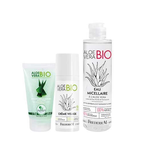 Pour une routine du soir idéale, démaquillez votre peau avec notre eau micellaire à l'aloe vera bio qui respectera votre peau sensible. Pour un nettoyage en profondeur, l'exfoliant doux à l'aloe vera sera votre allié ! Pour finir avec une touche de douceur, hydrater votre visage avec la crème visage de la même gamme.