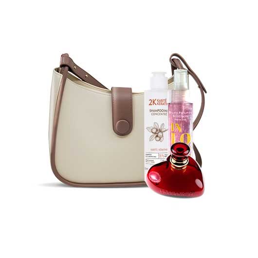 Ce que Femme Veut, une expression qui se transforme en fragrance. Par son bouquet finement élaboré, au départ enjoué de bergamote et mandarine, au cœur rond et élégant de tubéreuse et jasmin, et un sillage résolument féminin, Ce Que Femme Veut est un parfum aux multiples facettes. Sublimez et illuminez votre peau grâce à notre brume pailletée pour le corps. Des notes fleuries et fruitées qui vous envelopperont d’un cocon de douceur. Notre sac Bicolore apportera de la couleur à votre tenue automnale !