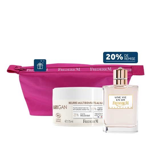 Le plus précieux des parfums FREDERIC M provoque convoitise et totale séduction par ses accords chyprés floraux. Cette offre comprend également un Karigan. Notre beurre multi usage au karité est un indispensable de la tête au pieds ! Il adoucit et nourrit en profondeur les cheveux et les peaux sèches grâce à sa formule au karité bio !