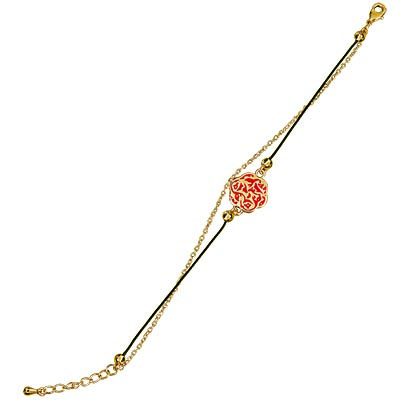 Collier doré avec chaine tour de cou et deux fleurs dorées et colorées descendant dans le décolleté.