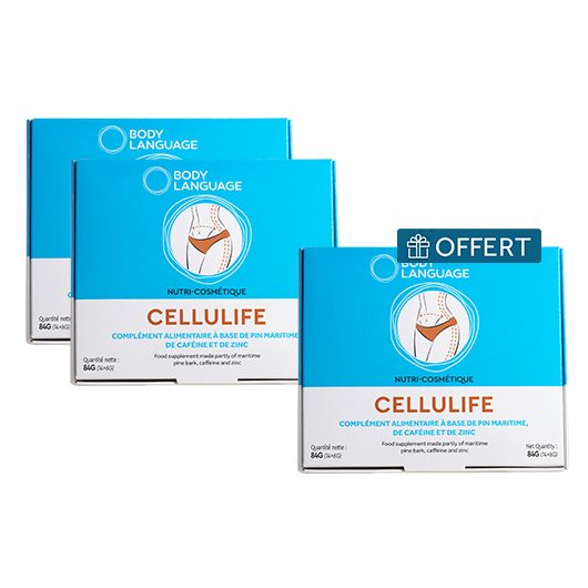 CELLULIFE est un complément alimentaire minceur qui agit sur les facteurs de la cellulite. La synergie des actifs végétaux qu'il contient favorise le déstockage des graisses et exercent une action lissante et drainante. CELLULIFE aide à faire disparaître le phénomène disgracieux de la peau d'orange.