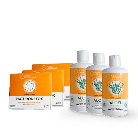 Utilisez en synergie l'Aloel et le Naturodetox pour une cure de 3 mois. L'Aloel va apporter à votre corps une sensation de bien-être général, du tonus et de l'équilibre. Le Naturodetox est un complément alimentaire qui va agir comme un détoxifiant, notamment dans les fonctions d'éliminations urinaires. Ensembles ils vous permettent de vous sentir mieux au quotidien.