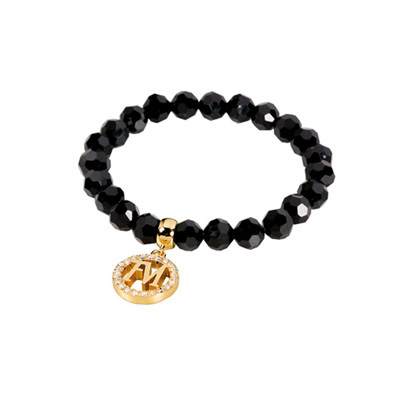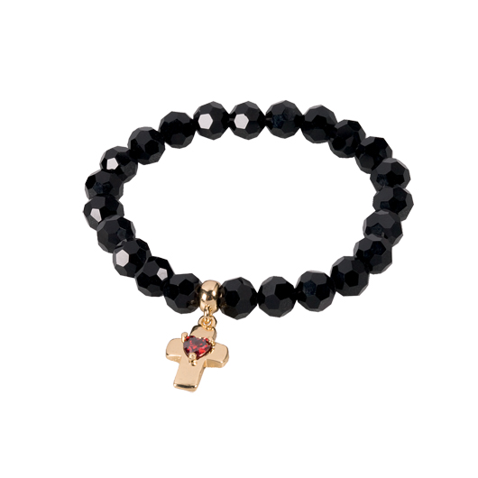 Модель из черного стекла с подвеской в цвете золота. Элементы подвески покрыты ювелирным воском для защиты от царапин.