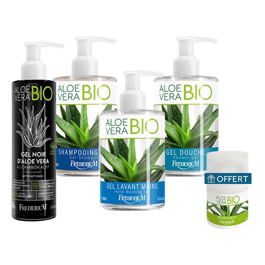 Zwarte aloë vera gel + aloë vera handzeep + aloë vera douchegel + aloë vera gelshampoo + roll-on deodorant