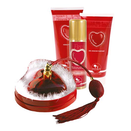 Follement féminin, follement séducteur. Le look années folles, et tellement raffiné de son flacon en forme de cœur, la boîte garnie d’un lit coquin de plumes blanches font de « Cœur à prendre » le parfum indispensable à toutes les femmes élégantes.